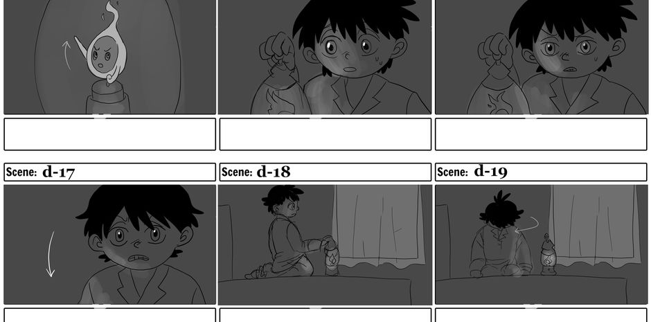 Thump, thump, thump! Matthew and Warmie abruptly turned their heads as the closet door made a huge sound. Warmie assured Matthew nothing could hurt him while he’s there. With a sudden feeling of bravery, Matthew picked up the oil lamp and opened the closet door. From the darkness inside the closet, a dark, flaming monster appeared. As soon as the door opened, the dark flame began to eat up the walls of the room. Matthew dropped and broke his oil lamp as he fell to his knees in fear and began crying as he watched the evil fire spreading. Warmie tried to protect Matthew but it was impossible for him to fight against the evil monster because Warmie was so small. All he could do was watching the evil monster approaching to Matthew. But there was Matthew’s rabbit doll lying down right next to Warmie. Without hesitant, Warmie absorbed the doll and from the broken rubble of the oil lamp, his warm, orange body rose up. Warmie covered Matthew with his warmth, blocking and absorbing the heat from the dark flames. And the room became so hot that the alarm and sprinklers went off. Eventually, the sprinklers began to extinguish both flames, and Matthew was safe. As Matthew watching Warmie extinguishing, his room door burst open as his parents came running in. Matthew’s mother hugged him and asked what happened as his father was looking for the source of the fire and picked up the remains of the oil lamp. As his parents hugged him, Matthew saw the last wisps of smoke from his fiery friend leaving through the window and saying goodbye.